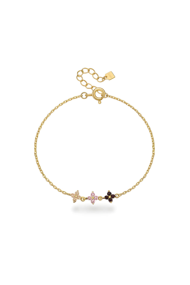 Jardin Secret Bileklik,altın kaplama üzerine yerleştirilmiş renkli cubic zirkon taşlı minik çiçek detaylarıyla tasarlanmıştır.