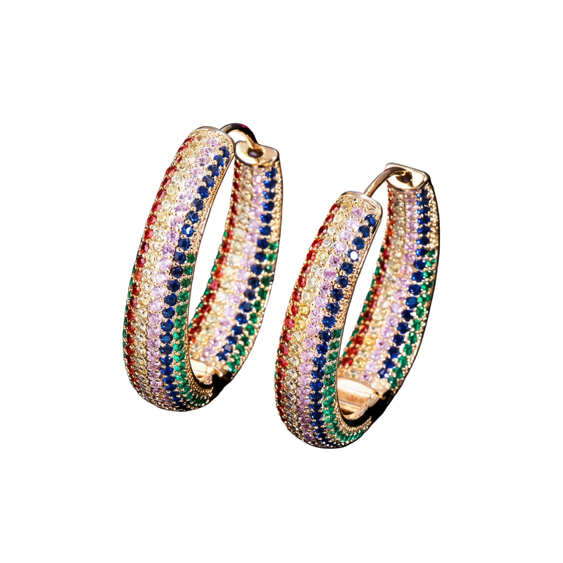 NOMINA Küpe — cesur renklerin ve rafine uygulamanın uyumlu bir birleşimi. Renkli zirkon taşlarla süslenen halka formülü, ışığın çok boyutlu şekilde yansıtılarak hem enerji hem de zarif bir fayda yaratır.